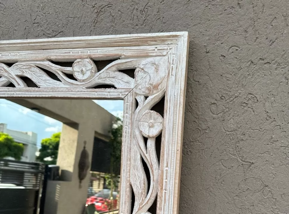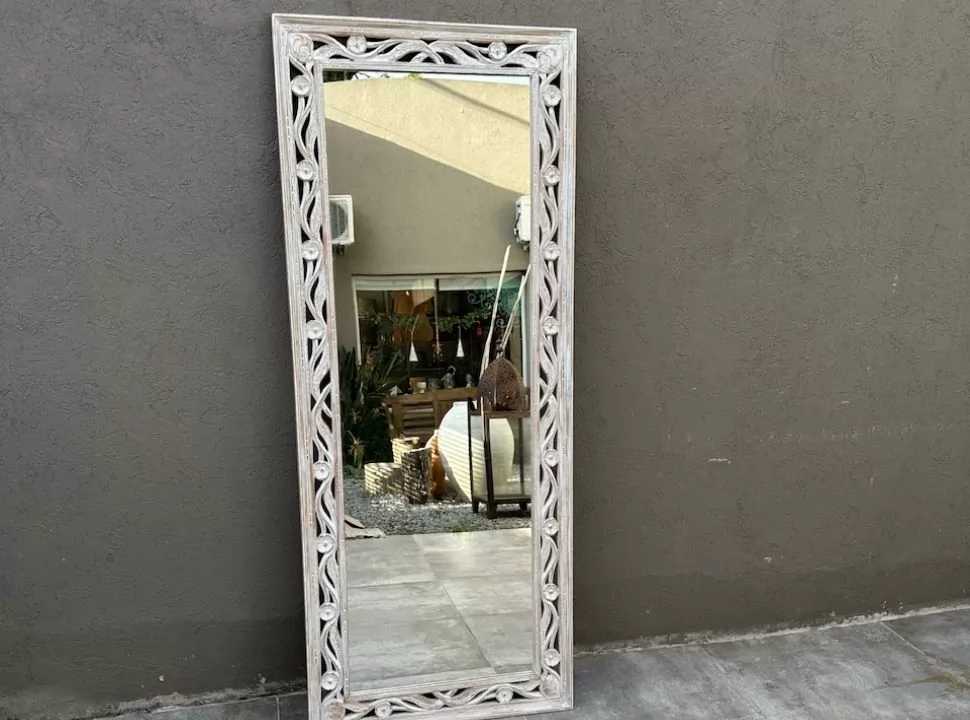 Espejo talla patina blanca decapada MEDIDA 70x170 Origen India