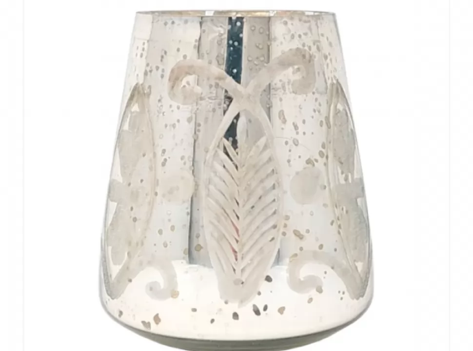 Fanal en vidrio con detalles plateados origen india medida: 15 cm
