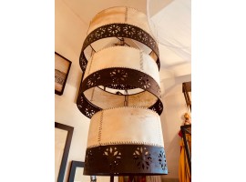 Lámpara en cuero y metal 40 diam. SIN tapa ni cadena