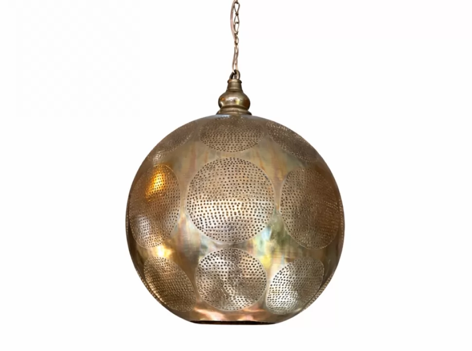 LAMPARA COLGANTE metal dorado trabajado a mano, cadena y plafón Medidas: 28 diámetro origen Egipto