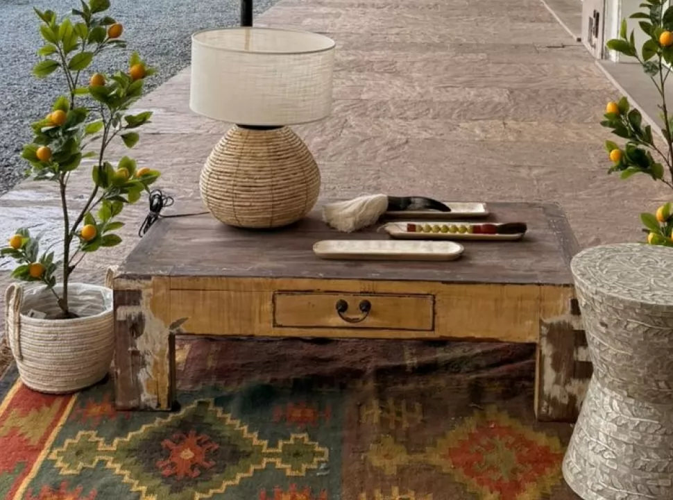 Mesa de madera de Olmo pintura decapada Medida cm Origen China